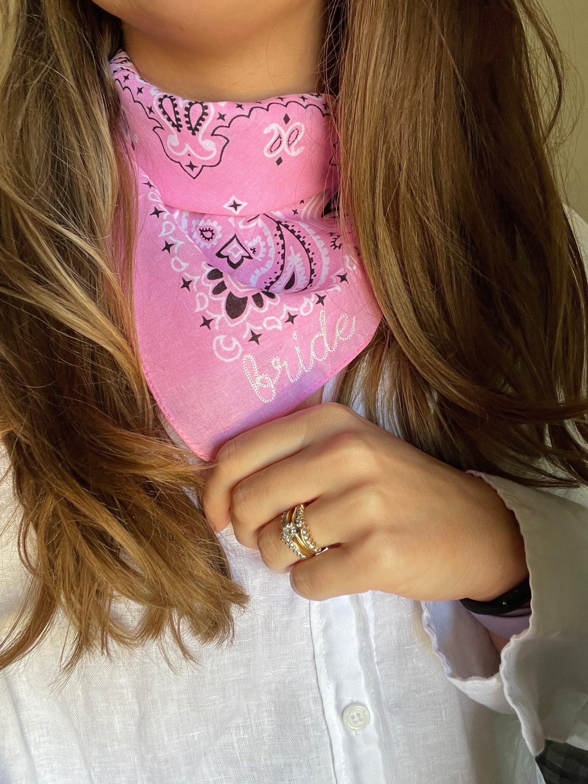 These are fun personalized bandanas that can be used as an accessory in many different ways. I am happy to customize a phrase that fits your occasion!